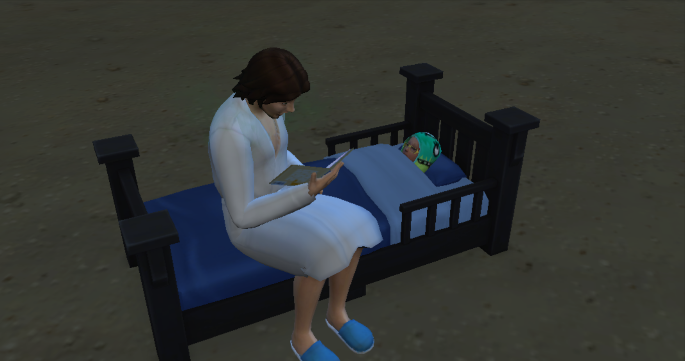 And super cute being read to sleep! Lucas is a family-oriented sim so I try and have him get the happy moodlet for having completed interactions with Helen in an attempt to make progress in his career. No such luck though as Lucas progresses like an elephant wading through toffee and despite being in an excellent mood, tasks and skills met… it often takes several days to get that promotion. (Plus I’m rubbish at chance cards, I know, I know!)