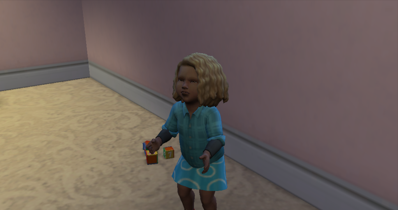Lexie was already preparing for the next baby whilst taking care of Helen. Helen is actually quite an easy-going toddler, her needs don’t plummet down like some other sims and she enjoys playing her games. Maybe I’m biased but I also think she’s absolutely beautiful.